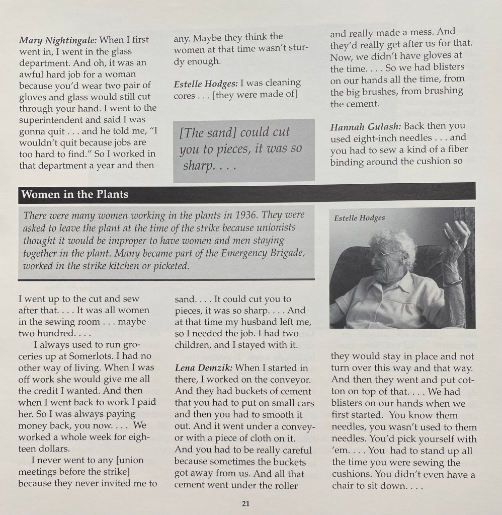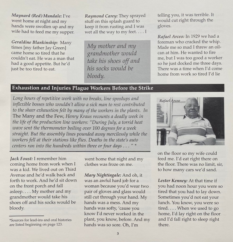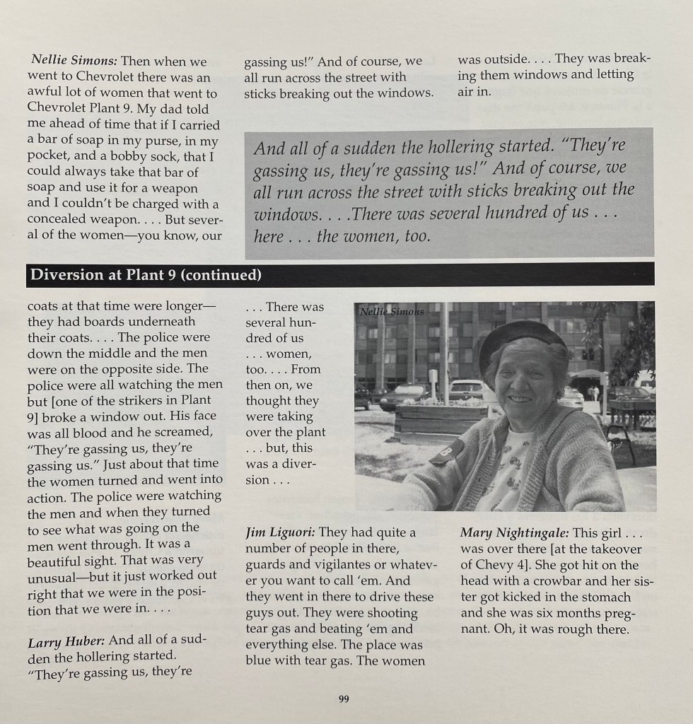 At Mott Community College in Flint, MI, a group of us developed a project meeting with surviving sitdowners and the people around them who helped the cause. We recorded their stories; I photographed them; and eventually we enlisted the help of artists to make portraits of those we spoke to. Below are some of pages from the book that resulted from this experience. An exhibition was held at the Greater Flint Arts Council Gallery in 1999.