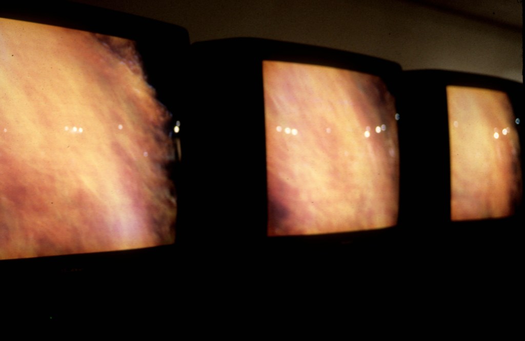 This is the last in a group of collaborations with women I studied with at the School of the Art Institute of Chicago. By this time we were scattered throughout the country: Cathy Gasser was in Kansas; Melissa was in New York; I was in Michigan. The internet was in its infancy though we did communicate through email. Each of us videotaped ourselves stressed out on a comfortable couch or bed. We had taped a conversation we had the previous summer when we were together in New York City. The piece consists of three monitors with the images of each of us and the conversation in text ran across the bottom of the screens. This piece was exhibited in Kansas, Michigan and Illinois.